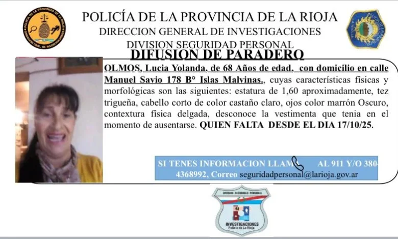 Se trata de Yolanda Olmos, oriunda del barrio Islas Malvinas, quien falta a su hogar desde el 17 de octubre pasado. El informe de Investigaciones: