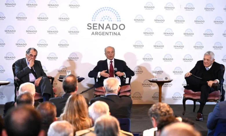 El exlegislador y padre del actual presidente de la Cámara de Diputados Martín Menem realizó esta presentación en el Salon Azul del Senado nacional acompañado por Rodolfo Díaz y Jorge Castro.