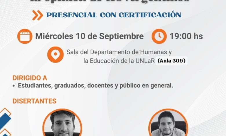 La charla será presencial, con certificación, y está dirigida a estudiantes, graduados, docentes y público en general, con un espacio abierto para el debate e intercambio de ideas.