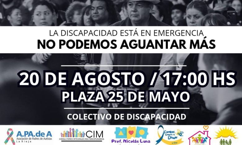 En La Rioja, desde las 17, organizaciones, profesionales, familias y personas con discapacidad se reunirán en la plaza 25 de Mayo en una vigilia que incluirá una mesa de diálogo, exposiciones y una marcha alrededor de la plaza, que finalizará con oradores representativos del colectivo.